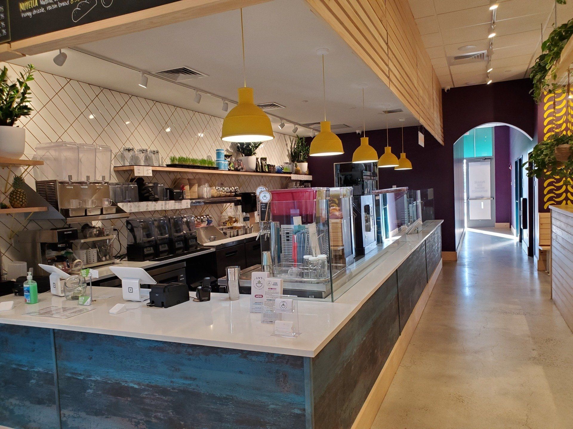 Power distribution, lighting, and fire alarm for Liv's juice bar.